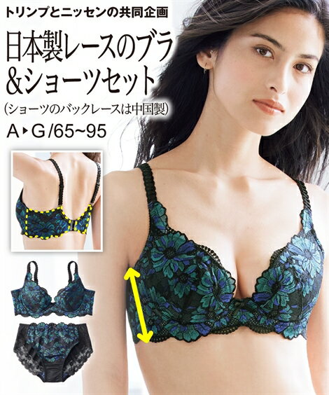 花刺しゅうレースブラジャー&ショーツペア(トリンプ)(ソフトワイヤー入り・3/4カップ) D70M D75L D80L E70M E75L E80L|2143-320378
